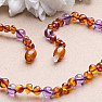 Amber beads for children baroque cognac color with amethyst
