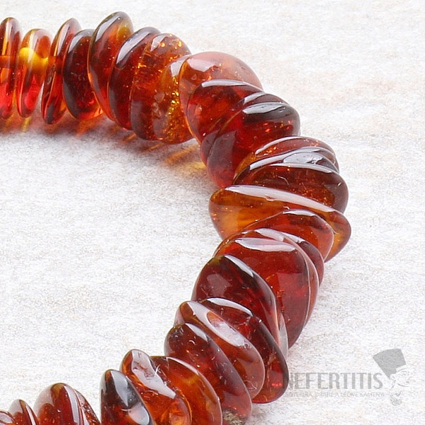 Distinctive bracelet made of large polished polished pieces of natural amber in the color of cognac, strung on a quality elastic nylon rubber band. ruby colors. Exceptionally nice jewelry, very pleasant to the touch, even velvety. Illustrative illustration.