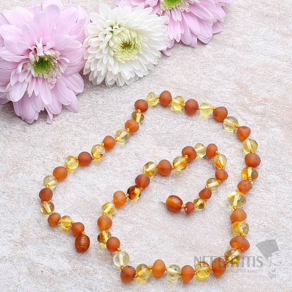 Amber beads, either in the form of a bracelet or a necklace , have been placed around children's necks for teething pain for centuries according to European folk traditions, especially in the Baltic countries. Since ancient times, people have believed that amber is also a very effective protective stone. Amber contains aromatic substances that are released by heat, so it is recommended to wear it on bare skin or expose the beads to the sun's rays. It then supplies the body with energy.