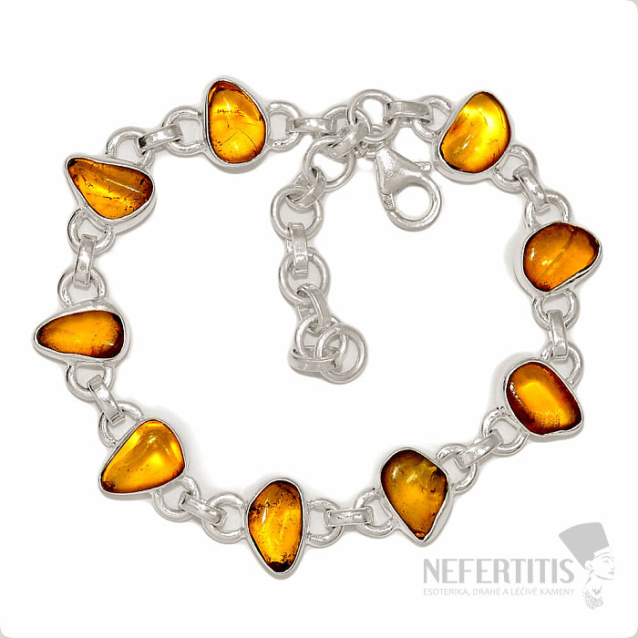 Unique silver bracelet made of Baltic amber. A very optimistic and good mood-inducing piece of jewelry. Ag 925. You are purchasing the exact piece of jewelry pictured. Bracelet size: approx. 16.5 cm, can be adjusted up… more »