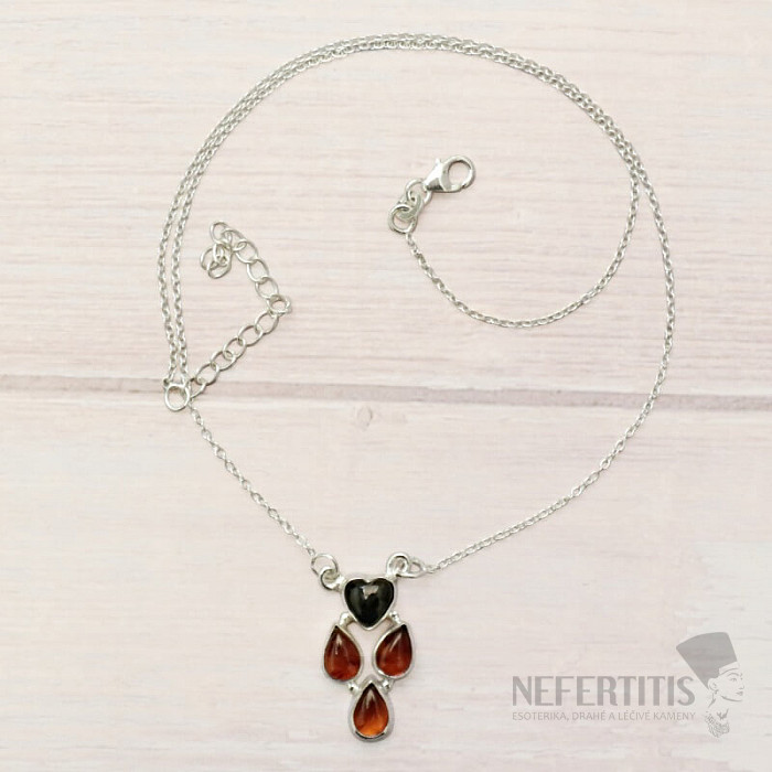 Unique silver necklace with Baltic amber cabochons and onyx. A very optimistic and good mood-giving piece of jewelry. Ag 925. You are purchasing the exact piece of jewelry pictured. Necklace size: approx. 42 cm, can be… more »