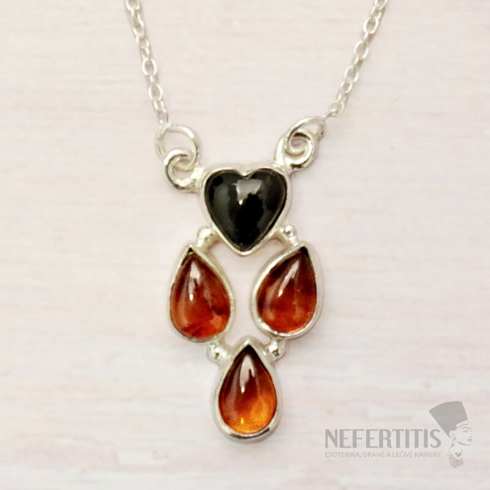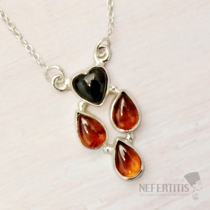 Unique silver necklace with Baltic amber cabochons and onyx. A very optimistic and good mood-giving piece of jewelry. Ag 925. You are purchasing the exact piece of jewelry pictured.