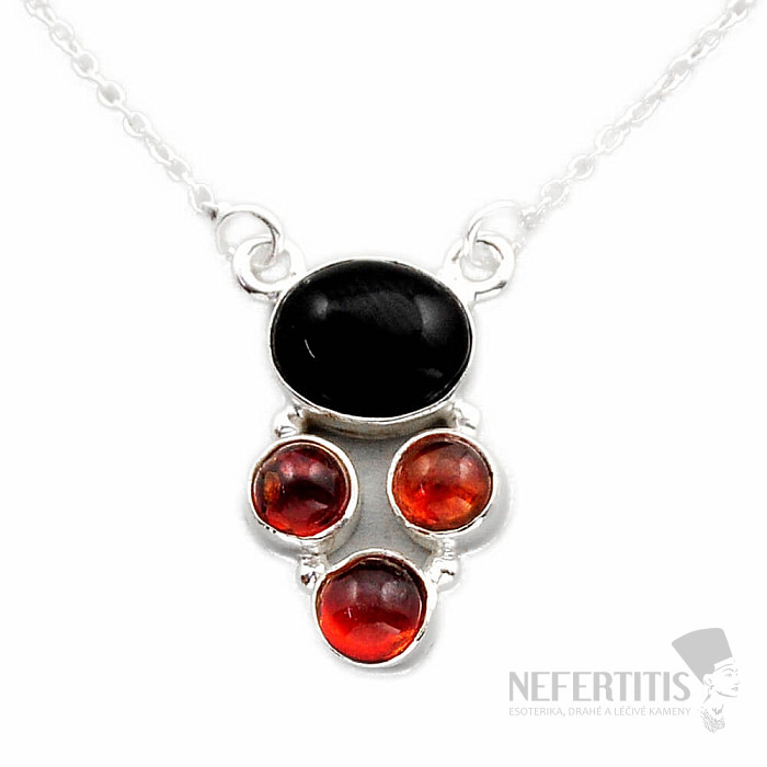 Unique silver necklace with Baltic amber and onyx cabochons. Very optimistic and a good mood-giving piece of jewelry from the moment you look at it. Ag 925. You are purchasing the exact piece of jewelry pictured.