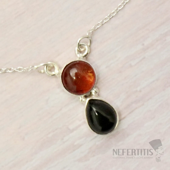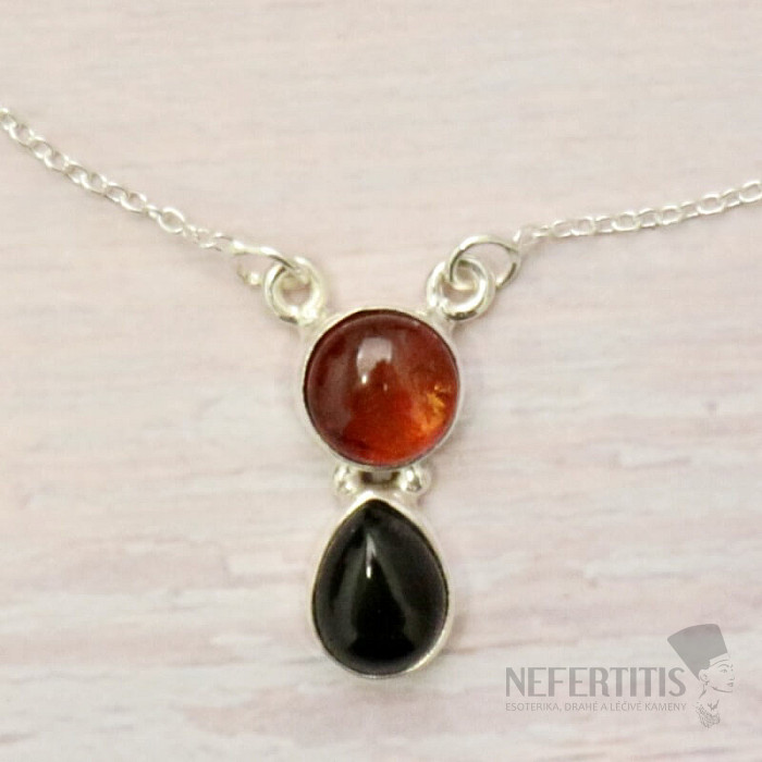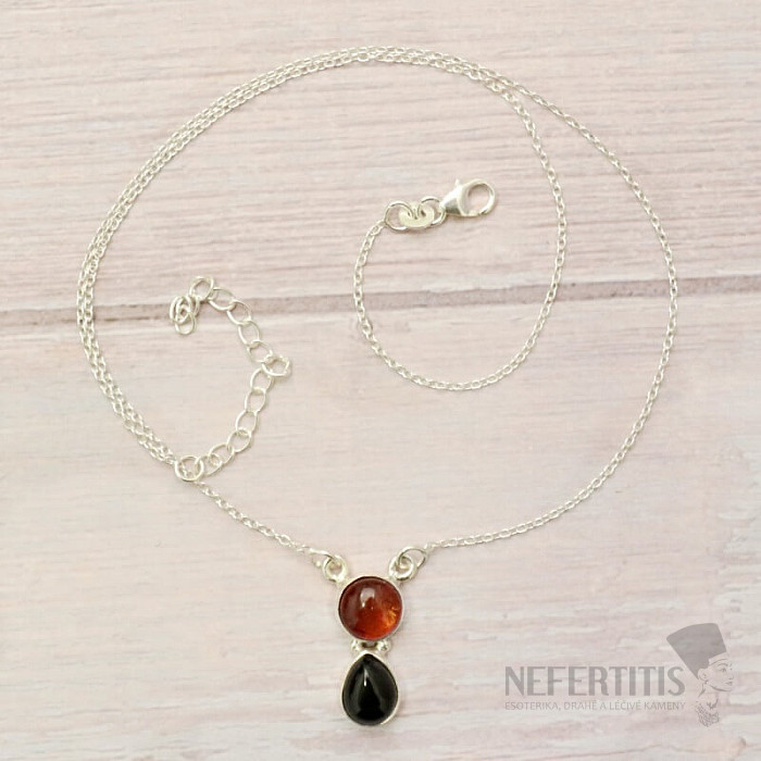 Unique silver necklace with a cabochon of Baltic amber and onyx. A very optimistic and good-mood-giving piece of jewelry. Ag 925. You are purchasing the exact piece of jewelry pictured.
