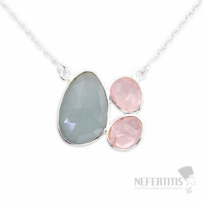 An exceptional silver necklace with cut aquamarine and rose quartz. A striking piece of jewelry that will charm everyone and no one will miss it on you. Ag 925. You are purchasing the exact piece of jewelry pictured.