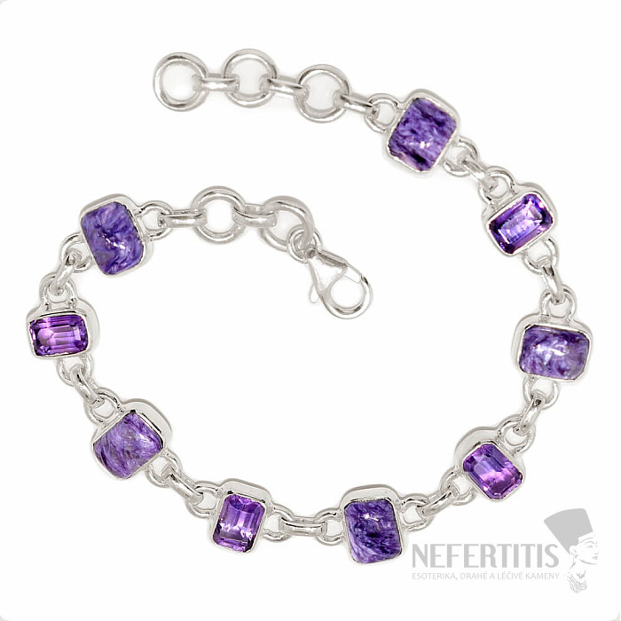 Silver bracelet with beautiful quality charms and cut amethysts. The beautifully purple colored charms will enchant you not only with their silky shine, but also with the transformation of the drawing in the changing light. Ag 925. You are purchasing the jewelry pictured directly.