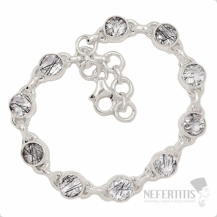 Silver bracelet made of cut crystal with rich inclusions of black tourmaline - skoryl. Ag 925. The unusual appearance of the stone due to inclusions resembling thin lines is combined into a designer piece of jewelry. You are purchasing the jewelry shown directly.