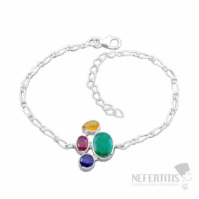 Silver bracelet with cut Indian emerald, ruby, sapphire and cabochon of Ethiopian opal. Ag 925. You are purchasing the jewelry pictured directly.