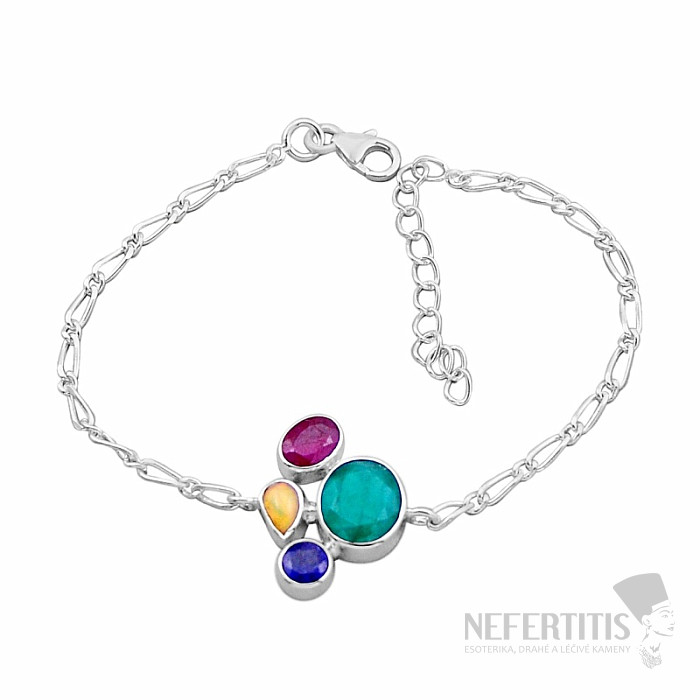 Silver bracelet with cut Indian emerald, ruby, sapphire and cabochon of Ethiopian opal. Ag 925. You are purchasing the jewelry pictured directly.