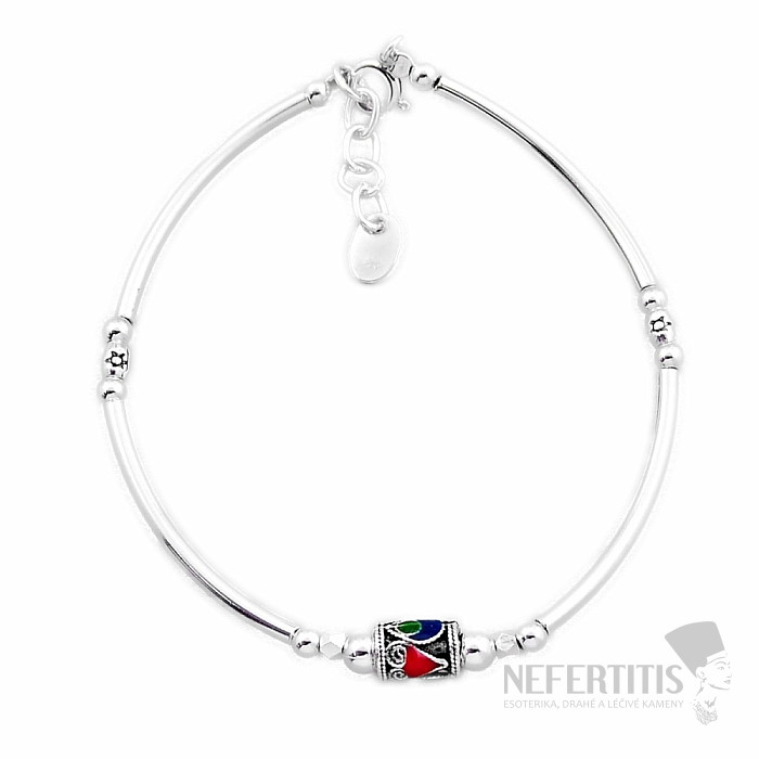 Silver bracelet with enamel. Ag 925. Size: bracelet length is approx. 18 cm, can be adjusted up to 19.5 cm. Enamel bead size 0.5 x 0.7 cm.