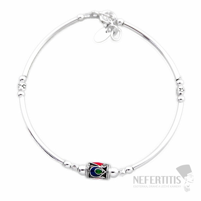 Silver bracelet with enamel. Ag 925. Size: bracelet length is approx. 18 cm, can be adjusted up to 19.5 cm. Size of enamel bead approx. 0.5x0.7 cm.