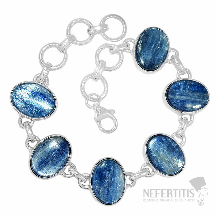 Silver bracelet with cabochons of beautifully colored kyanite . Ag 925. You are purchasing the jewelry pictured. Bracelet size: the length of the bracelet is approx. 19 cm, can be fastened up to approx. 21.5 cm. The… more »