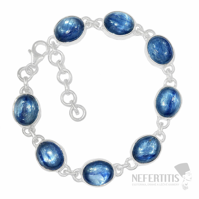 Silver bracelet with cabochons of beautifully colored kyanite . Ag 925. You are purchasing the jewelry pictured. Bracelet size: the length of the bracelet is approx. 18 cm, can be fastened up to approx. 20.5 cm. The… more »