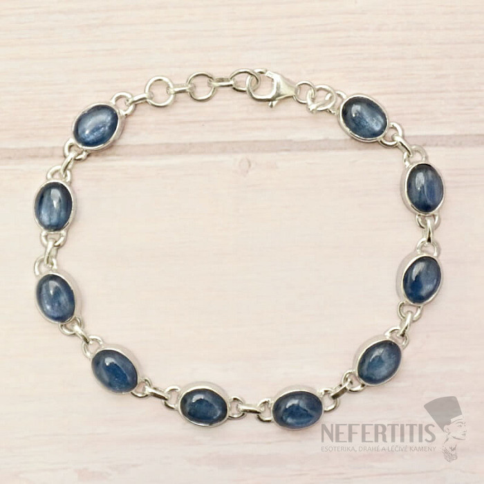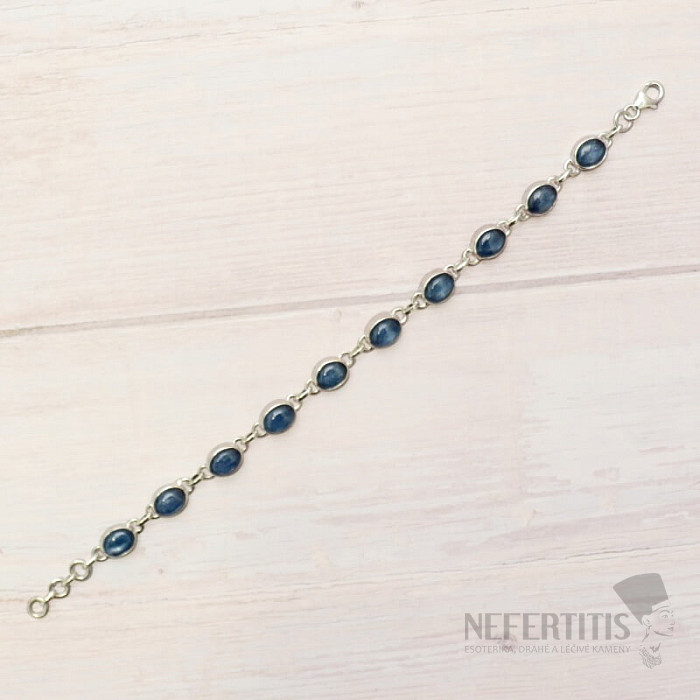 Silver bracelet with cabochons of beautifully colored kyanite . Ag 925. You are purchasing the jewelry pictured. Bracelet size: the length of the bracelet is approx. 20 cm, can be fastened up to approx. 21.5 cm. The… more »