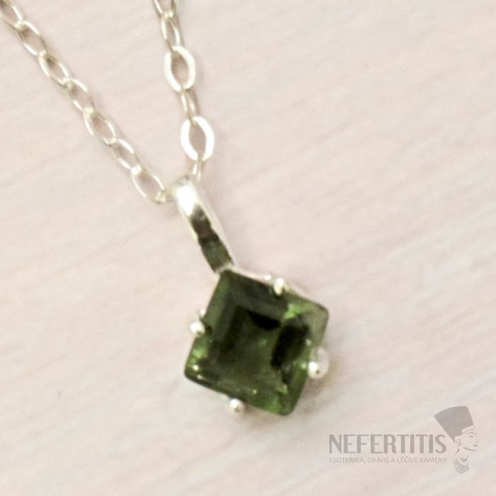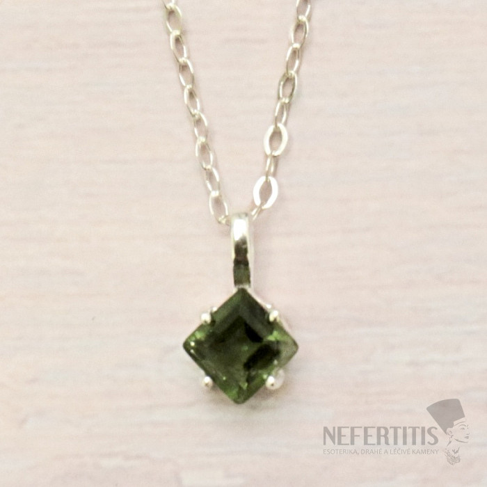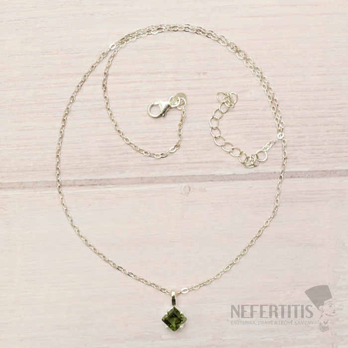Attractive silver necklace with cut moldavite. Ag 925. You are purchasing the jewelry pictured.