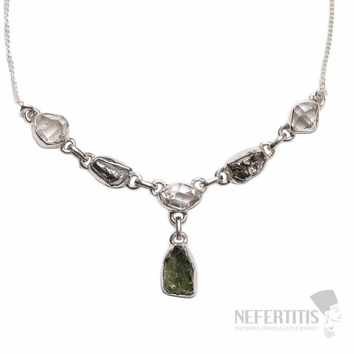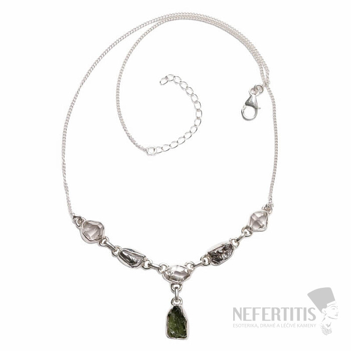 Attractive silver necklace with moldavites, Herkimer diamonds and Campo del Cielo meteorites. Ag 925. You are purchasing the jewelry pictured.