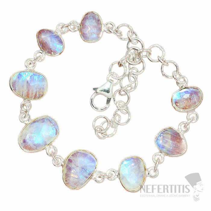 An exceptional silver bracelet with a faceted rainbow moonstone. Ag 925. A striking piece of jewelry that will charm everyone and no one will miss it on your hand. An attractive piece of jewelry thanks to the beautiful play of blue reflections on hundreds of cut facets of high-quality stones. You are purchasing the jewelry pictured directly.