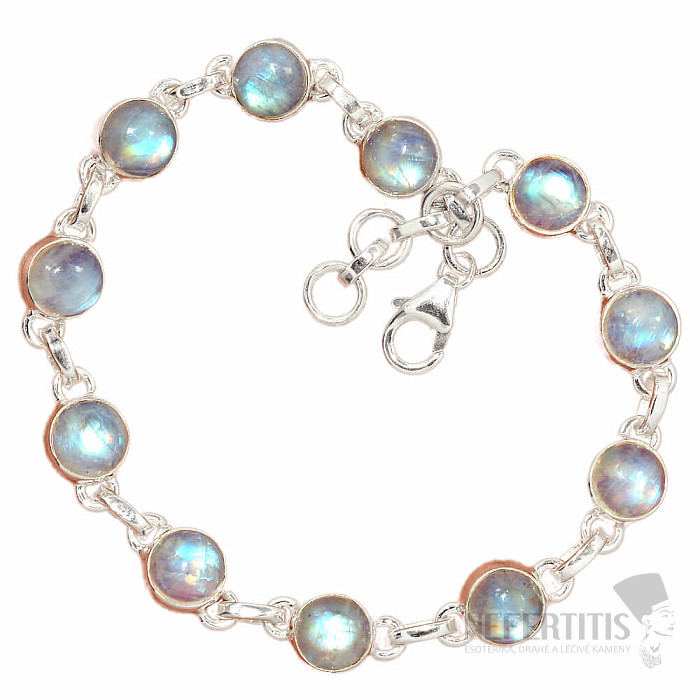 Exceptional silver bracelet with rainbow moonstone. Ag 925. A striking piece of jewelry that will charm everyone and no one will miss it on your hand. Attractive bracelet thanks to the beautiful play of blue reflections on the cabochons of high-quality moonstone. You are purchasing the jewelry pictured directly.