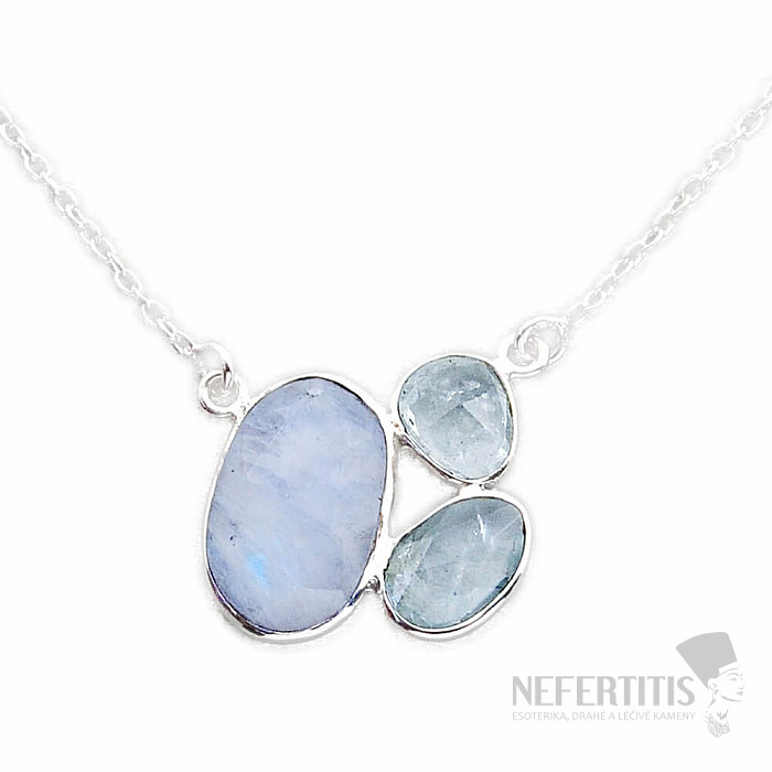 Silver necklace with cut moonstone and aquamarines. Ag 925. You are purchasing the jewelry pictured.