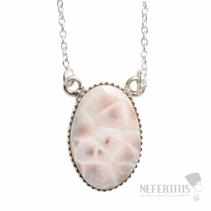 Silver necklace with natrolite. Ag 925. Natrolite is a stone of personal growth, resonates with the crown chakra and the Third Eye chakra, thus supporting communication and concentration. You are purchasing the jewelry… more »