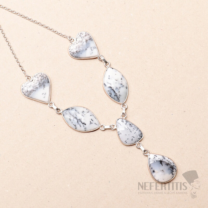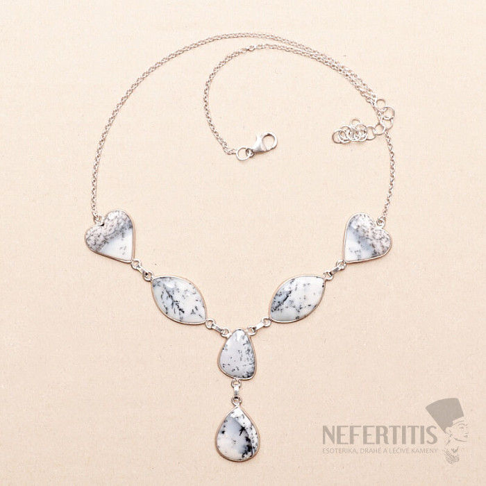 Silver necklace with dendritic opal cabochons. Ag 925. You are purchasing the jewelry shown directly.