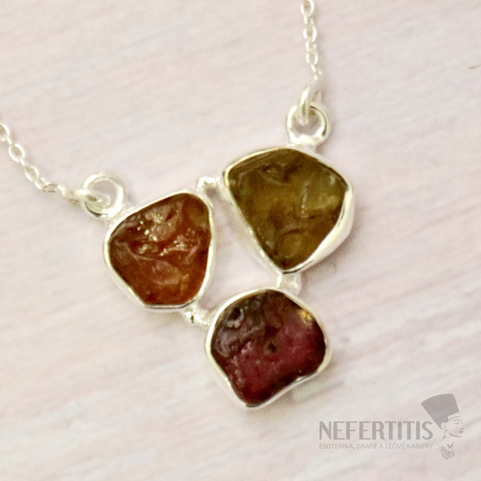 Charming silver necklace with raw multi-colored tourmalines . Ag 925. Delicate and yet distinctive, elegant and, thanks to the beautiful pink color of the tourmaline, an unmissable piece of jewelry. You are purchasing the jewelry pictured.
