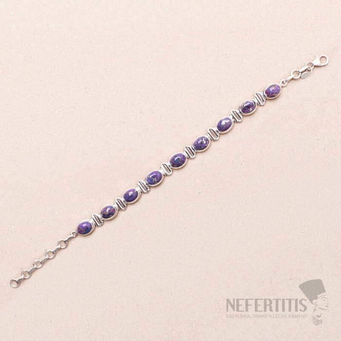 An exceptional silver bracelet with pieces of turquoise , connected by copper into impressive cabochons of a beautiful purplish-purple color. This color is achieved by coloring the stone. This type of jewelry is gaining popularity worldwide due to the ever-increasing price of single pieces of natural turquoise. Cabochons created in this way are one of the few options today to buy jewelry with natural turquoise at a relatively affordable price. Ag 925. You are buying the directly depicted piece of jewelry.