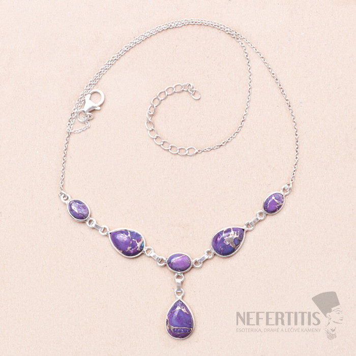 An exceptional silver necklace with pieces of turquoise , connected by copper into impressive cabochons of a beautiful purplish-purple color. This color is achieved by coloring the stone. This type of jewelry is gaining popularity worldwide due to the ever-increasing price of solid pieces of natural turquoise. Cabochons created in this way are one of the few options today to buy jewelry with natural turquoise at a relatively affordable price. Ag 925. You are buying the directly depicted piece of jewelry.