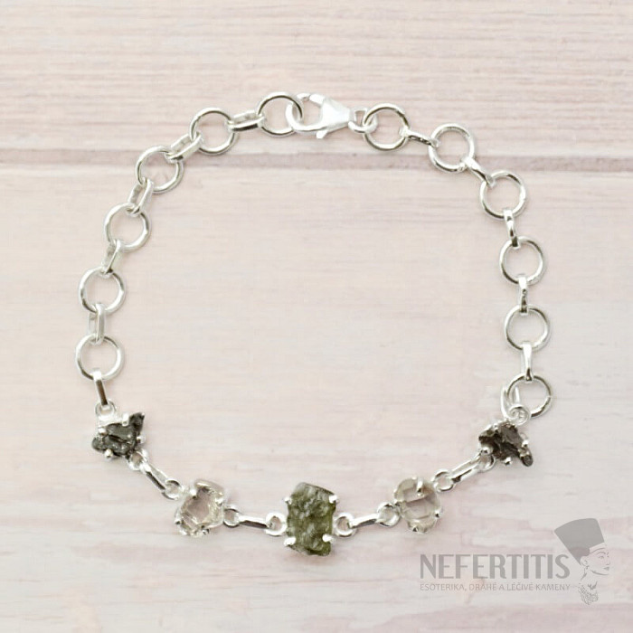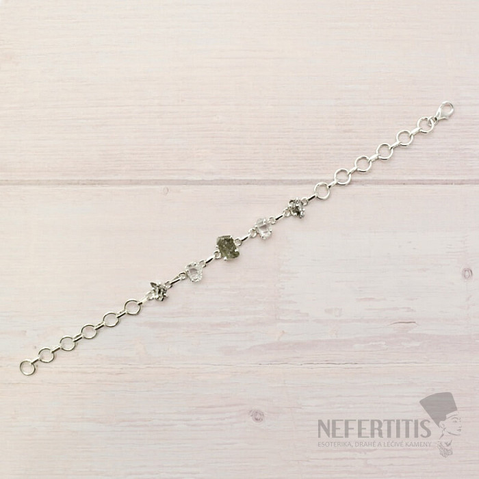 Vltavín, Herkimer diamond and Campo del Cielo meteorite bracelet silver Ag 925 LOT33