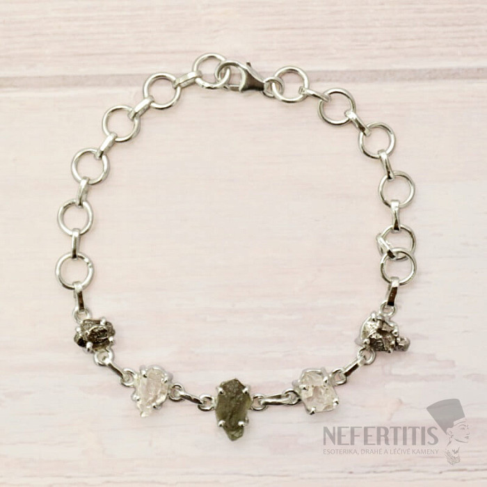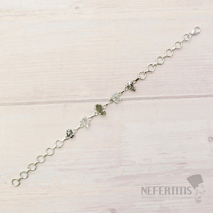 Vltavín, Herkimer diamond and Campo del Cielo meteorite bracelet silver Ag 925 LOT36