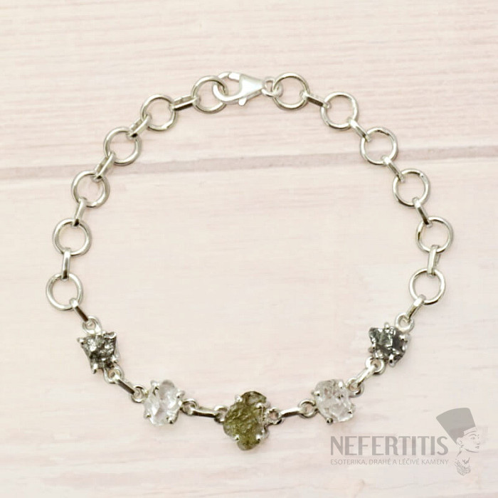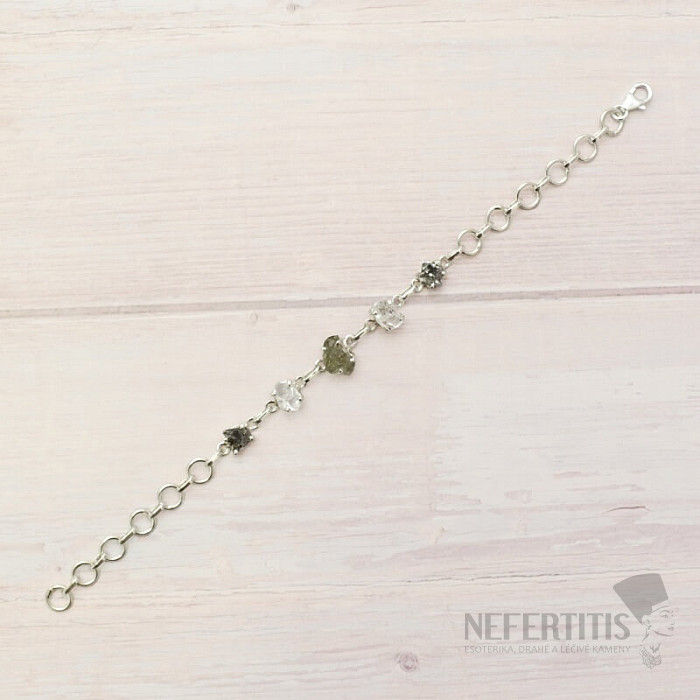 Vltavín, Herkimer diamond and Campo del Cielo meteorite bracelet silver Ag 925 LOT37