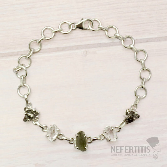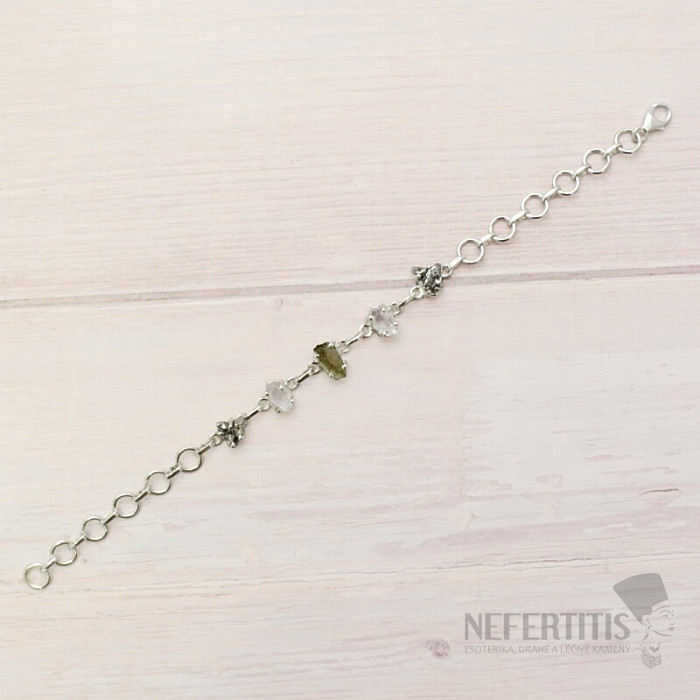Vltavín, Herkimer diamond and Campo del Cielo meteorite bracelet silver Ag 925 LOT41