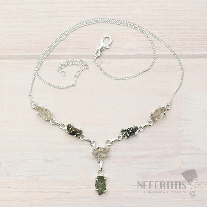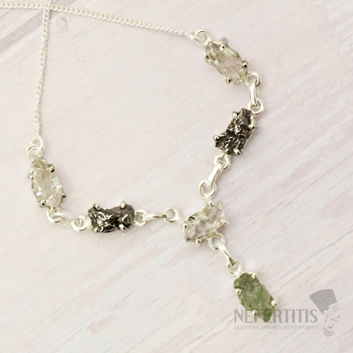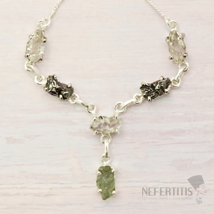 Vltavín, Herkimer diamond and meteorite necklace silver Ag 925 LOT35