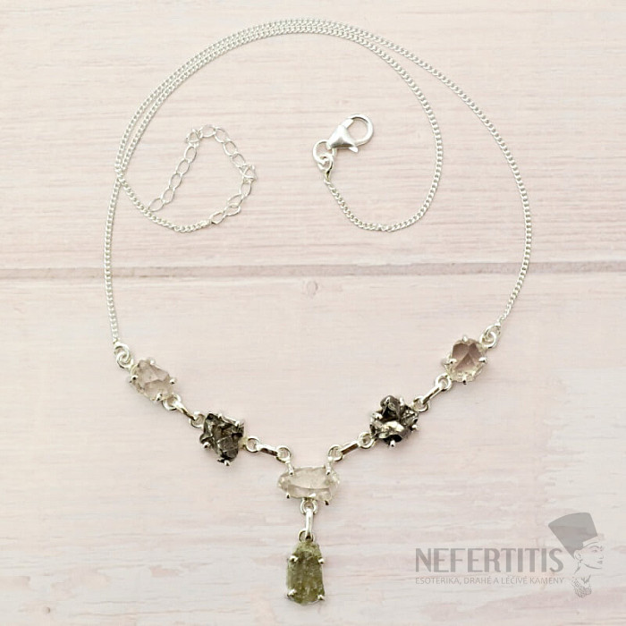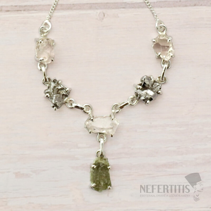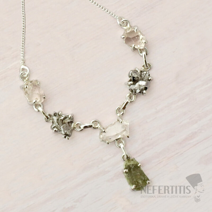 Vltavín, Herkimer diamond and meteorite necklace silver Ag 925 LOT39