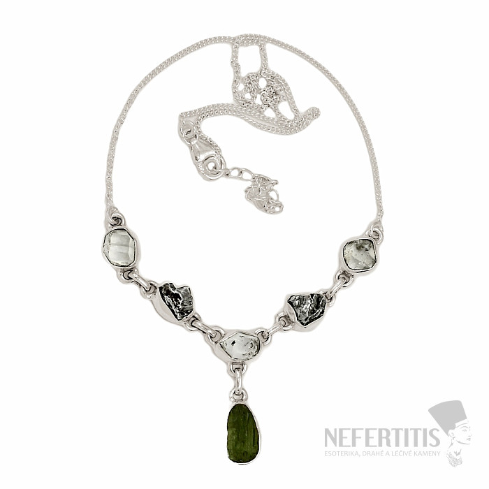 Vltavín, Herkimer diamond and meteorite necklace silver Ag 925 N44