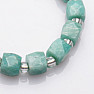 Beautiful author's bracelet made of natural cut amazonite. The glitter of the bracelet is supplied by glass seed beads. This is one of our designer jewelry. The bracelet made of unusually shaped stones is an unusual accessory for many occasions. The size of the beads is approx. 9.5 - 10 x 9.5 - 10 mm and approx. 5 mm, strung on a high-quality nylon rubber band of neutral color. Czech handmade.