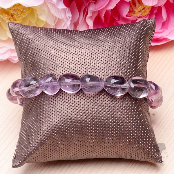 Attractive bracelet made of lilac amethyst nugget. Nugget size approx. 10 - 20 x 13 - 15 mm, threaded on a quality nylon rubber band of neutral color. Czech handmade.