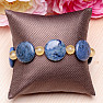 Attractive bracelet made of blue dumortrierite in A quality in combination with calcite. This is one of our designer bracelets. Dumortierite strengthens self-control, organizational skills, courage and peace of mind. Dumortierite is a stone of hope, it helps the turn for the better in difficult life situations. The blue color of dumortierite means the beginning of a new life and potent emotions. It brings trust, faith, patience and self-esteem. Dumortierite discs with a size of approx. 20 mm and calcite beads of approx. 8 mm are threaded on a strong nylon rubber band of neutral color. Czech handmade.