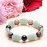 Author's bracelet ENERGY WOOD from aventurine and smoky. This is one of our designer jewelry. The elegant bracelet combines green and brown symbolizing the energy of wood, which is used for growth, new beginnings and health, increases vitality and maintains physical development. Bead size approx. 10 mm and 5 x 13 x 18 mm, strung on a high-quality nylon rubber band of neutral color. Czech handmade.