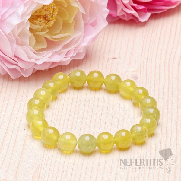 Attractive jadeite bracelet in AA quality. Green is the color of life force, heart chakra, growth, abundance, prosperity and the element of wood. The size of the beads is about 10 mm, strung on a high-quality nylon rubber band of neutral color. Czech handmade.