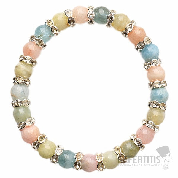 A beautiful and unique design bracelet made of natural morganite beads, also called pink emerald, brings love, belonging and mutual understanding between partners. It is a stone of divine love. This is one of our designer jewelry. Morganite is the personal stone of people born in the sign of Libra. Pink morganite is complemented by glittering applications in Swarovski style. An elegant bracelet, suitable for various occasions, which, thanks to the glitter and the color of morganite, no one will miss it on your hand. Bead size approx. 8 mm, strung on a high-quality nylon rubber band of neutral color. Czech handmade.