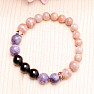 Attractive bracelet made of sunstone beads, agate and lepidolite, complemented by glittering applications with Swarovski style. Bead size approx. 10 and 8 mm, threaded on a quality nylon rubber band of neutral color, glittering applications are made of base metal. Czech handmade.
