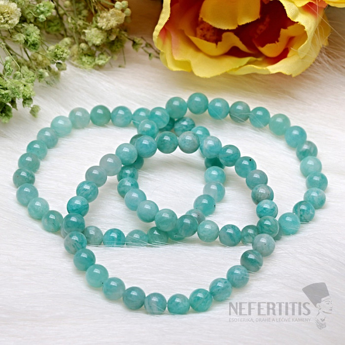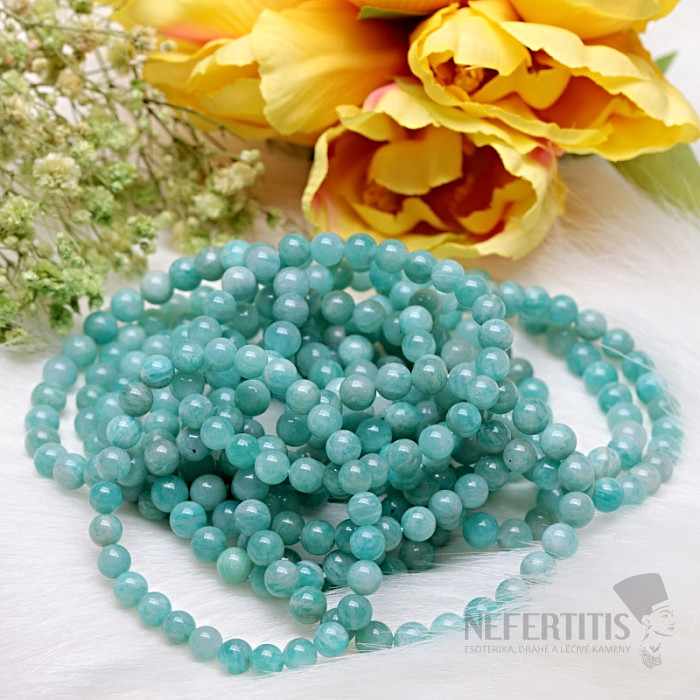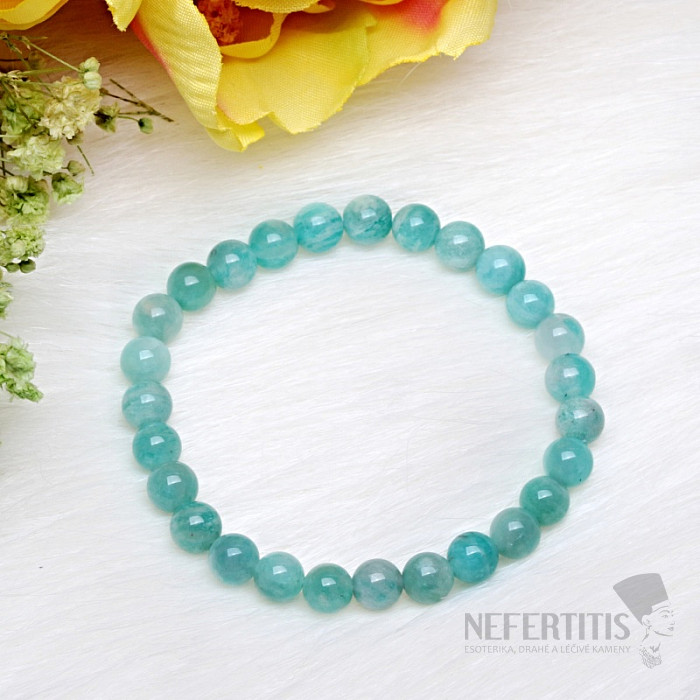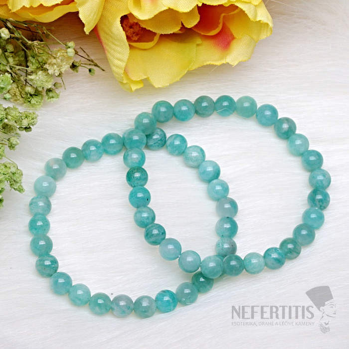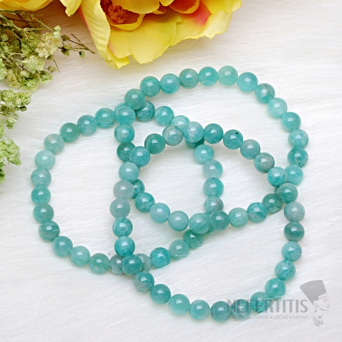 Children's bracelet made of amazonite A quality is a delicate and beautiful piece of jewelry made of a mineral that will captivate with its fresh green color and natural stone pattern. Amazonite is a popular mineral known for its soothing shades that resemble the color of water and nature. The beads are approximately 6 mm in size. Illustrative image of a natural material, when the color and structure of the stone may differ from the accompanying photos. However, you will always receive a bracelet of comparable quality.
