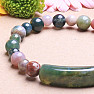 Bracelet made of polished beads of beautiful colored Indian agate in extra quality with predominant green tones. Diameter of beads approx. 8 mm and central stone approx. 3.7 cm. Beads are strung on high-quality nylon elastic of neutral color. Illustrative image.