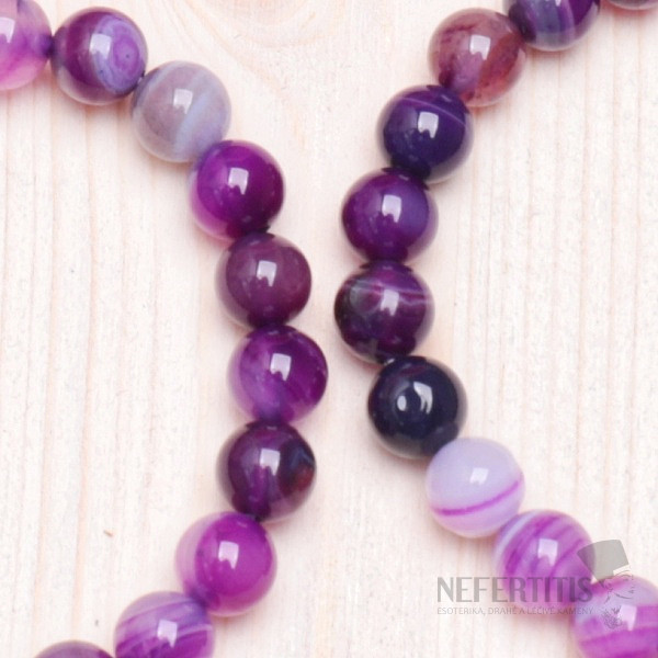 Bracelet made of purple striped agate. Striped agate is very attractive in appearance. Purple is the color of the crown chakra, in Feng Shui it represents the element of fire. The size of the beads is about 8 mm, strung on a high-quality white nylon rubber band. Illustrative depiction of natural material, where the color and structure of the stone may differ from the accompanying photographs. However, you will always receive a bracelet of comparable quality.
