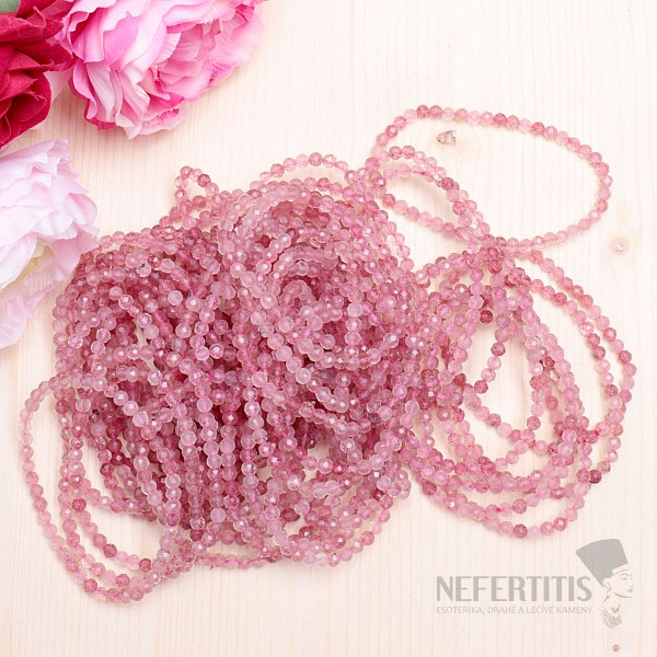 A charming, glittering, strawberry-colored crystal miracle, this is a bracelet made of cut beads of a rare natural so-called strawberry crystal of AA quality . Hundreds of cut surfaces give the bracelet an unmistakable shimmer. Strawberry crystal, also often called "red fire" in English, is the trade name for a rare and beautiful variant of the crystal, which carries iron oxide inclusions that give it its characteristic, strawberry red color. Bead size approx. 4 mm, strung on a high-quality nylon rubber band. Illustrative image, you will receive a bracelet of comparable quality. We are very happy to be able to offer you this crystal in our shop.