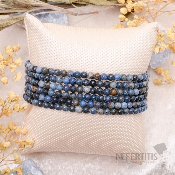 A delicate bracelet made of natural dumortierite in elegant blue shades looks calm, balanced and timeless. The 8 mm beads give the bracelet a subtle look, making it suitable for both casual wear and more elegant outfits.