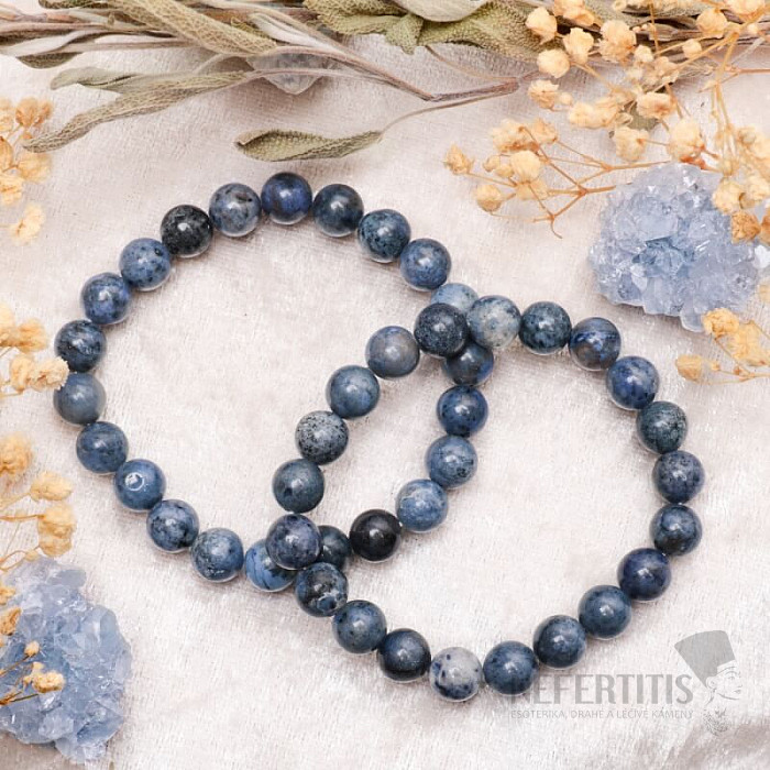 A delicate bracelet made of natural dumortierite in elegant blue shades looks calm, balanced and timeless. The 8 mm beads give the bracelet a subtle look, making it suitable for both casual wear and more elegant outfits.