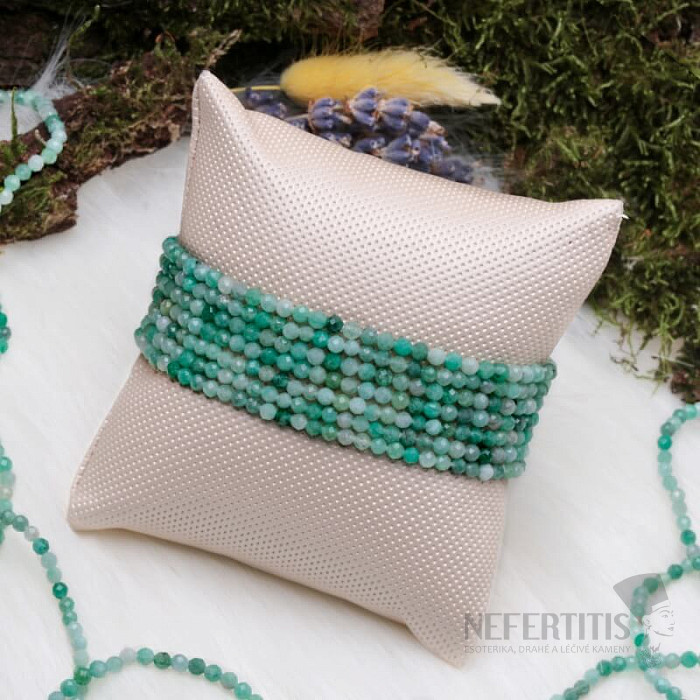 Beautiful glittering bracelet made of cut beads of natural emerald AA quality. The glitter of the bracelet supplies light falling on hundreds of cut surfaces. Beads approx. 3 mm are strung on a high-quality nylon rubber… more »