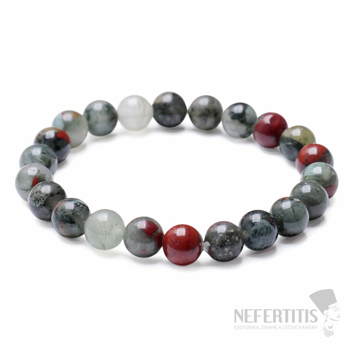 Distinctive bracelet made of beautiful natural heliotrope. Bead size approx. 1 cm, threaded on a quality nylon rubber band of neutral color. Illustrative depiction of natural material, where the color and structure of the stone may differ from the accompanying photographs. However, you will always receive a bracelet of comparable quality.